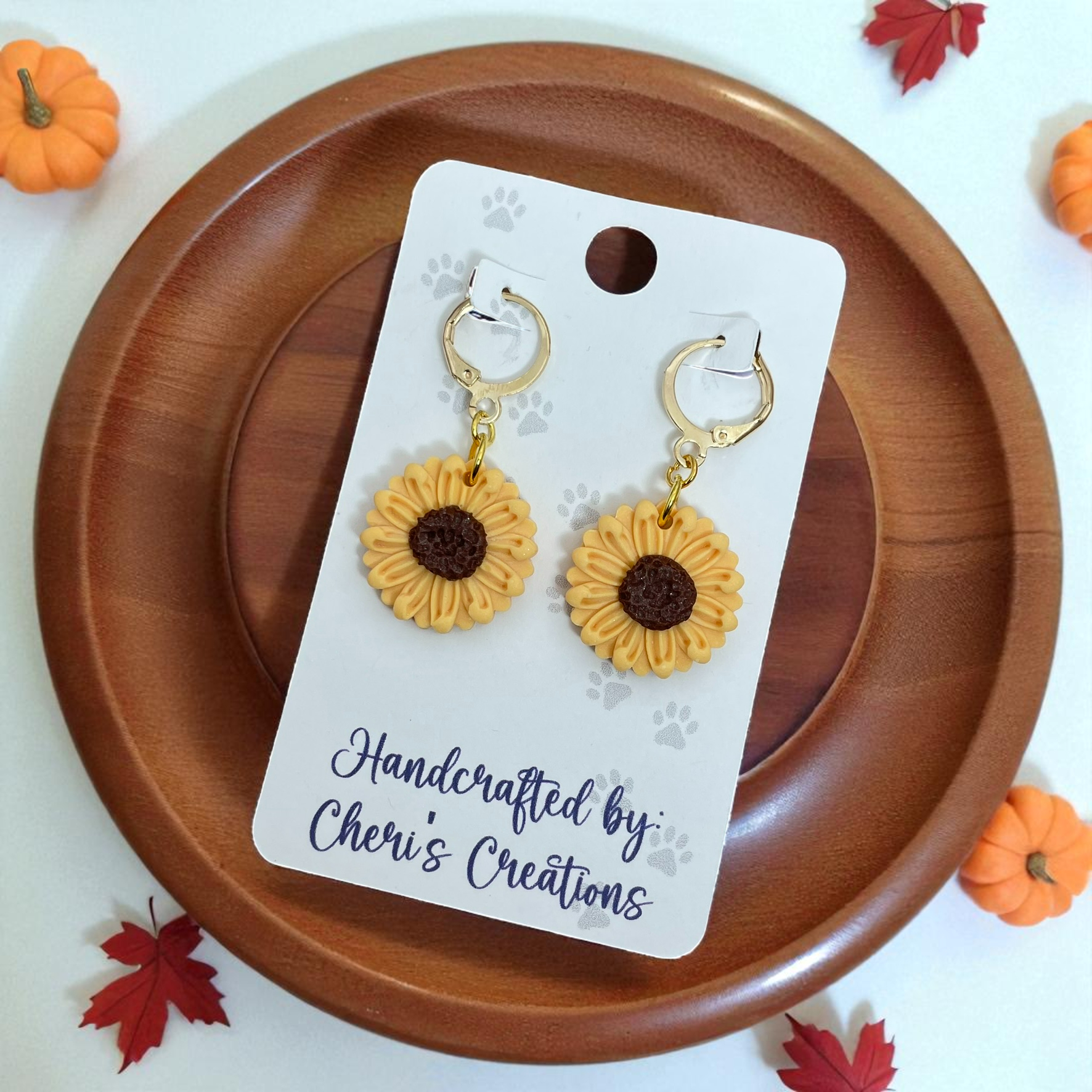 Simple Fall Sunflowers Polymer Clay Dangle Earrings