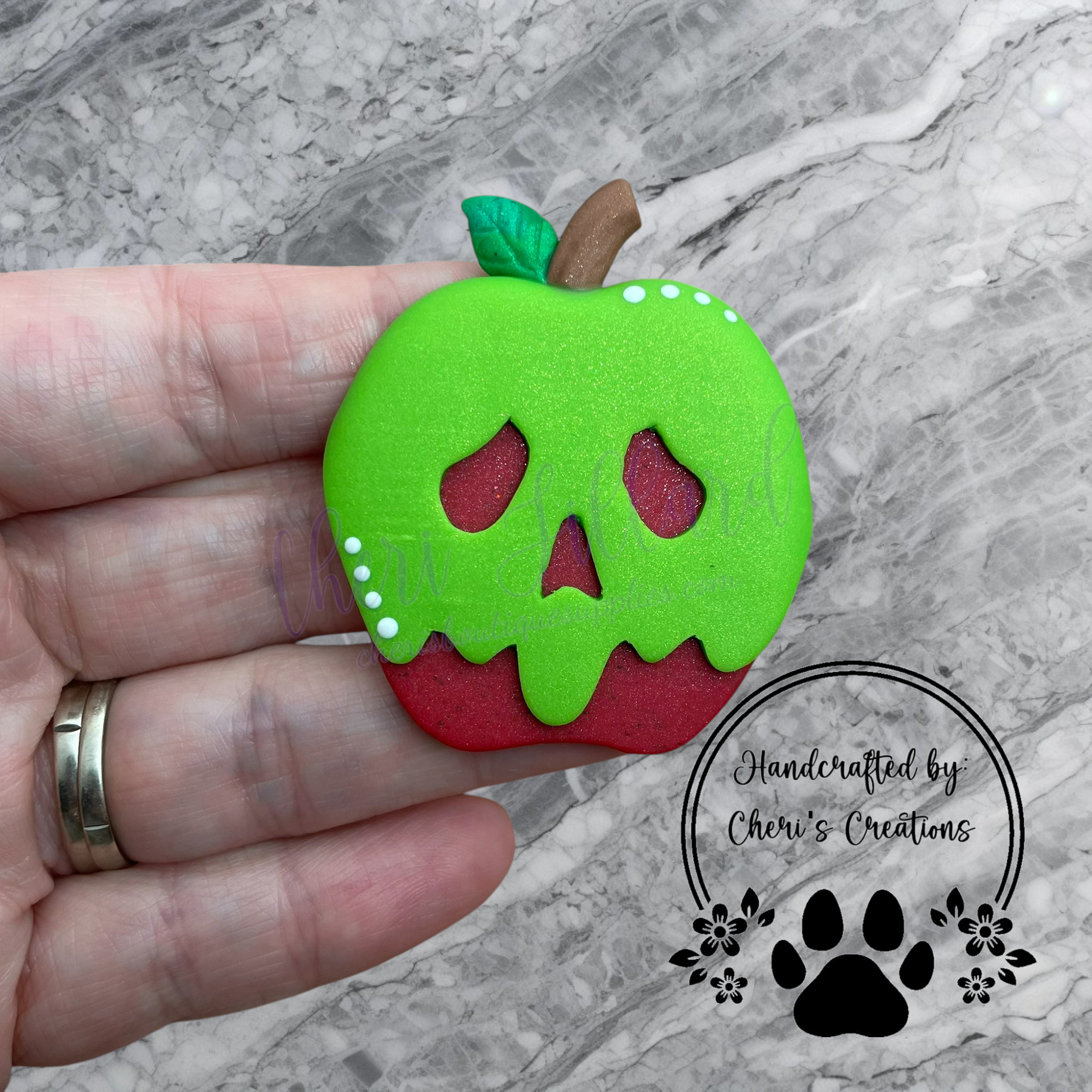 Add a wicked twist to your Halloween projects with this handmade polymer clay embellishment featuring a spooky poison apple. With its eerie drips and bold design, this piece is perfect for adding a creepy-cute vibe to your bows, planners, keychains, or other spooky-season crafts.