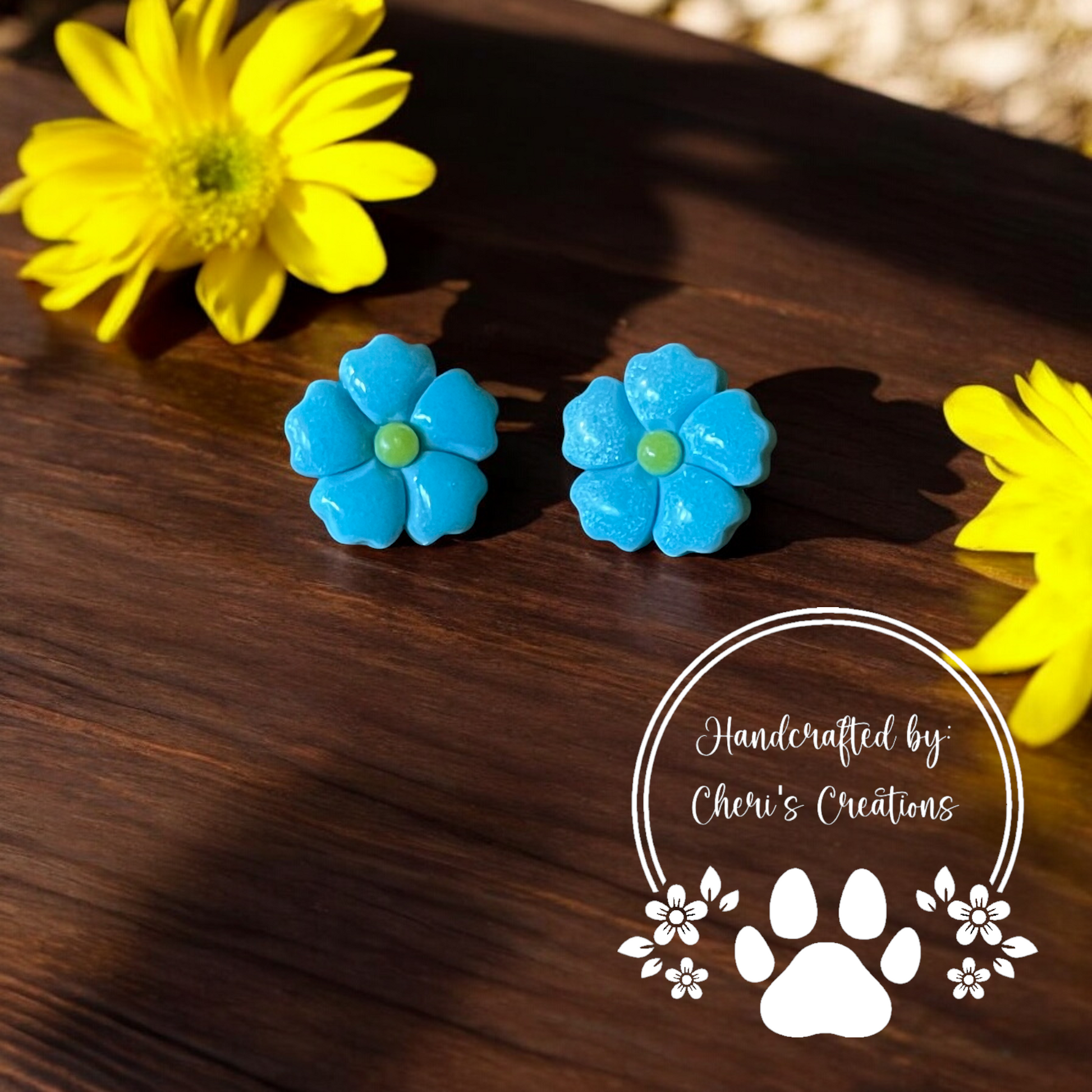 Turquoise 5 Petal Flower Polymer Clay Stud Earrings