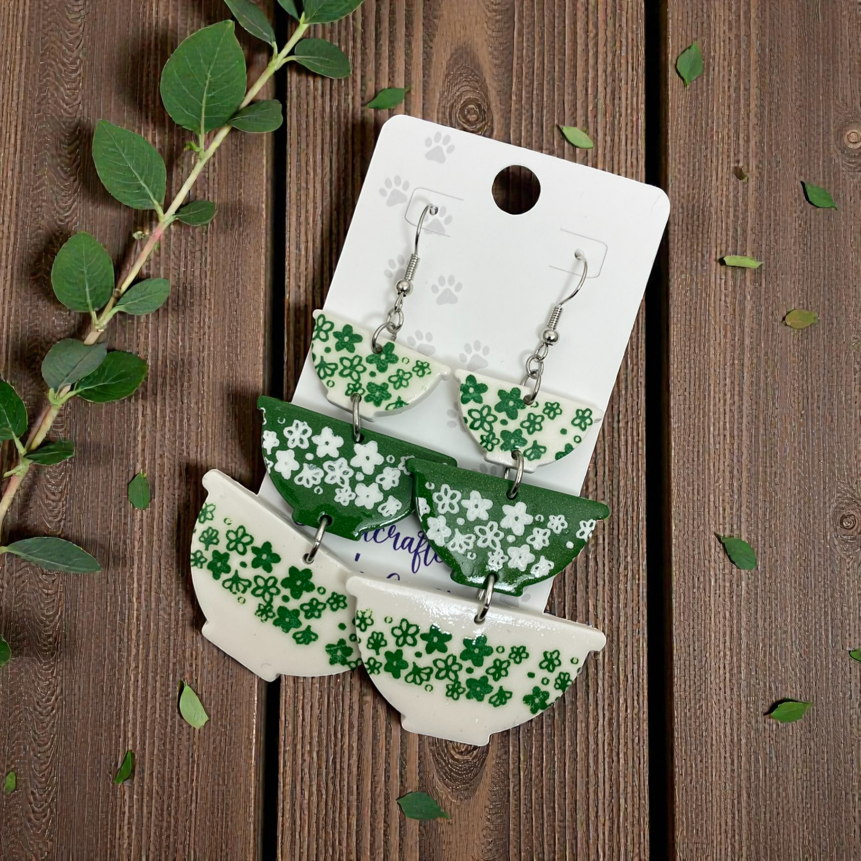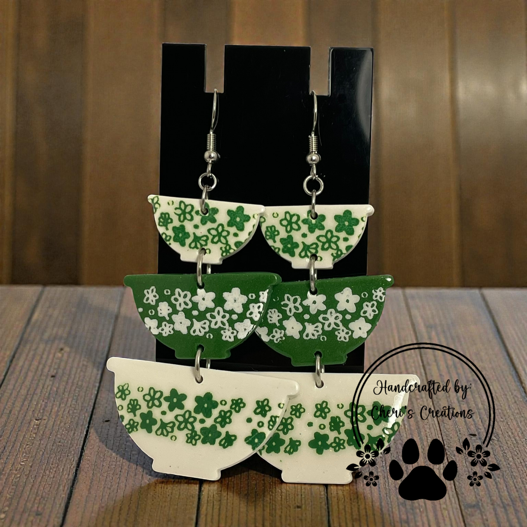 Vintage Bowl Dangle Earrings – Handmade Polymer Clay Earrings