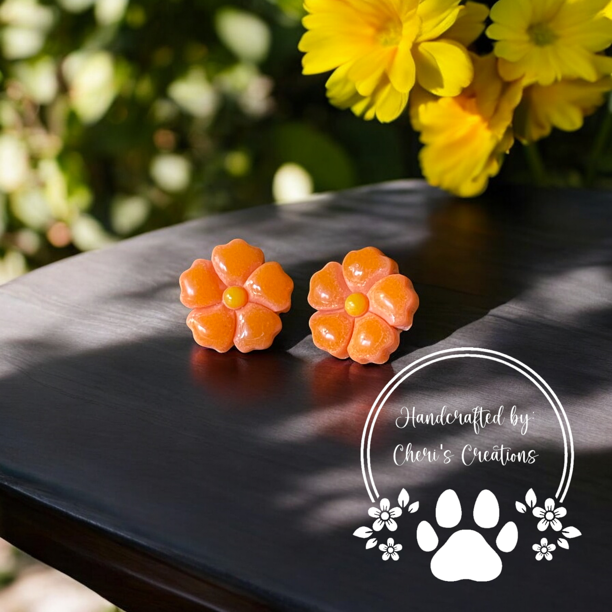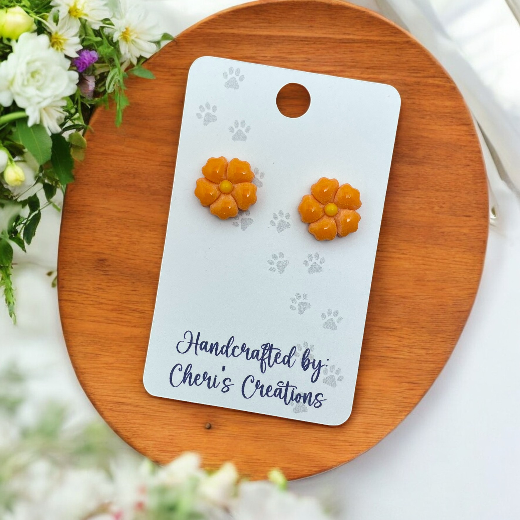 Orange 5 Petal Flower Polymer Clay Stud Earrings