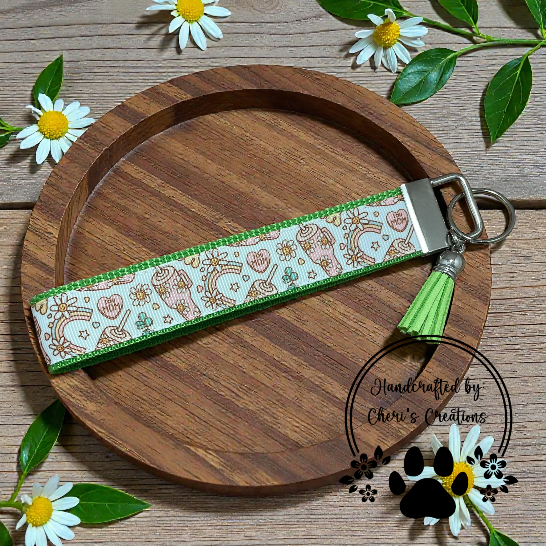 Wristlet Keychain - Mama's Travel Mug Key Fob