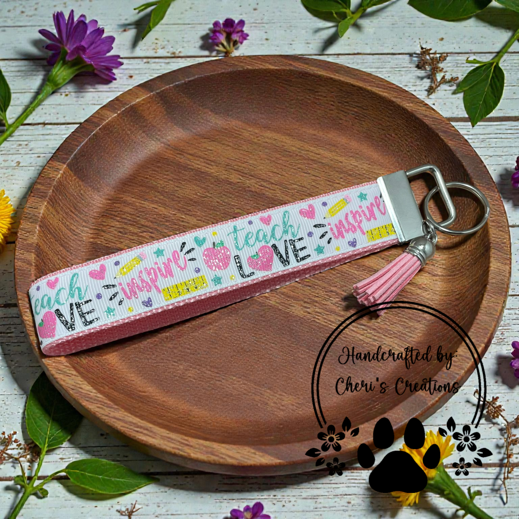 Wristlet Keychain - Pastel Teach Love Inspire Key Fob