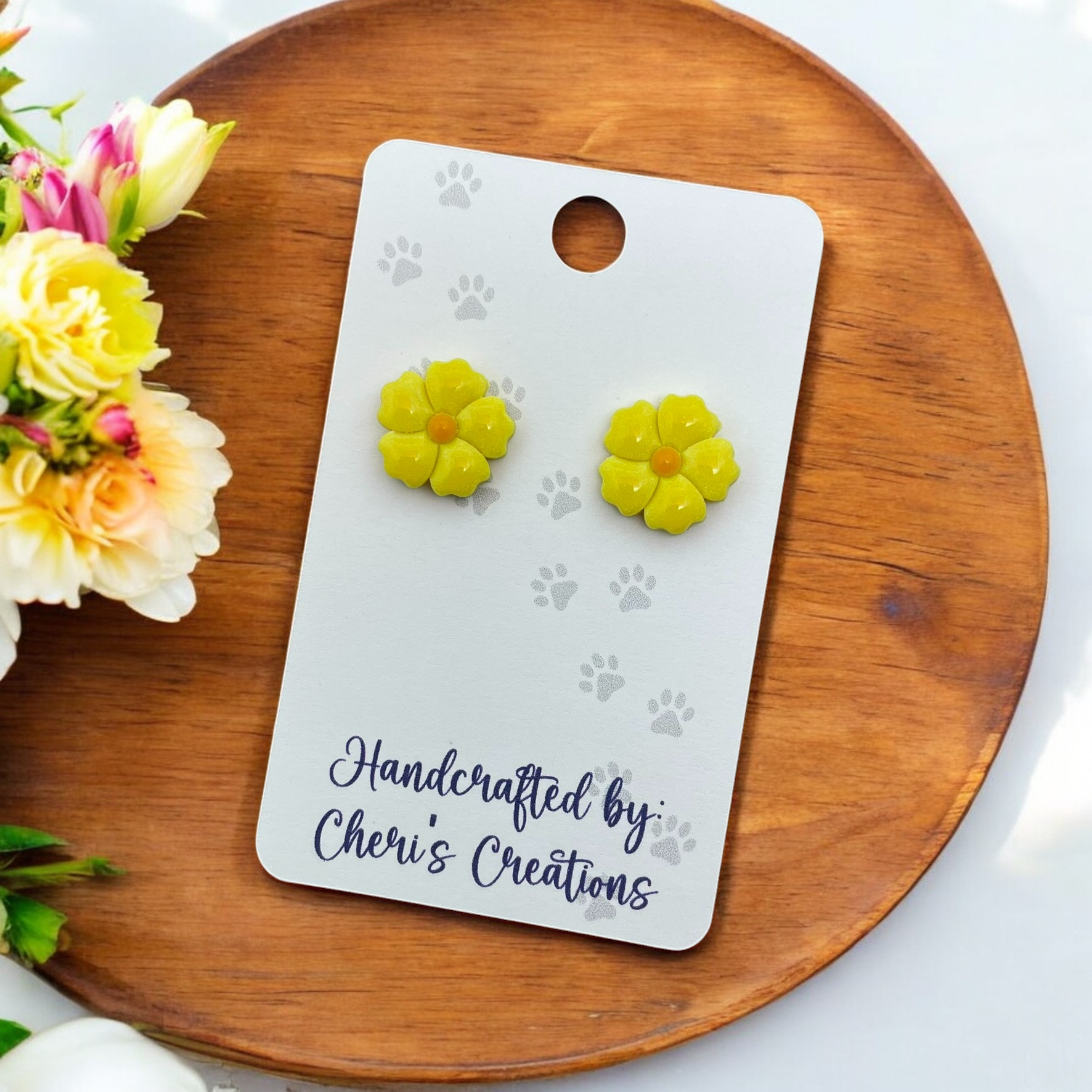 Yellow 5 Petal Flower Polymer Clay Stud Earrings