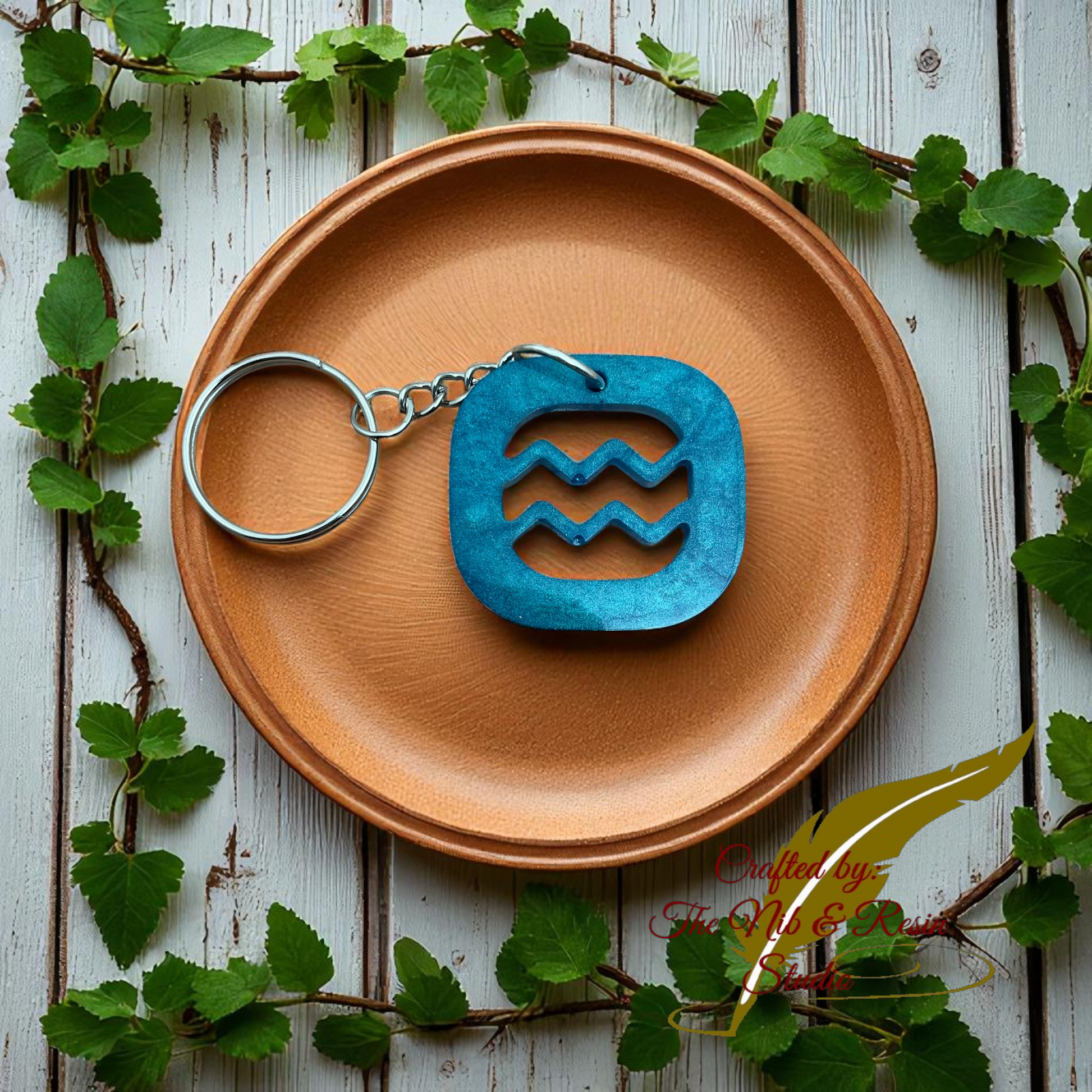 Aquarius Zodiac Symbol Resin Keychain – 1.25" x 1.5" Rounded Square